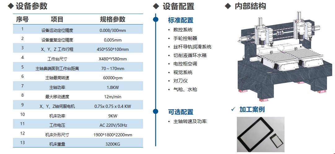 采用高精度研磨滚精丝杆、直线导轨,NSK高精度轴承,配备高转速高精密主轴和先进的主轴冷却恒温系统。